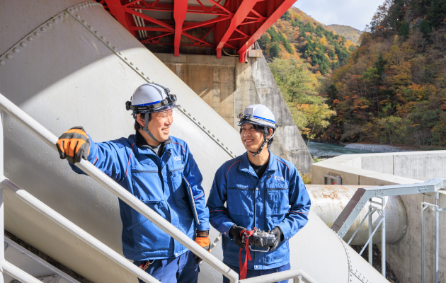主に、水力発電所の土木設備(ダム・導水路・ゲート・水圧鉄管など)の点検・調査・診断・補修や、水力発電所の運転に関わる各種業務を行っています。